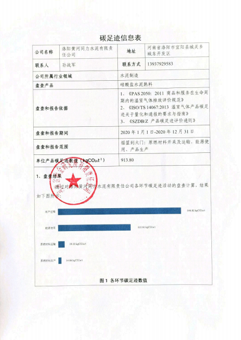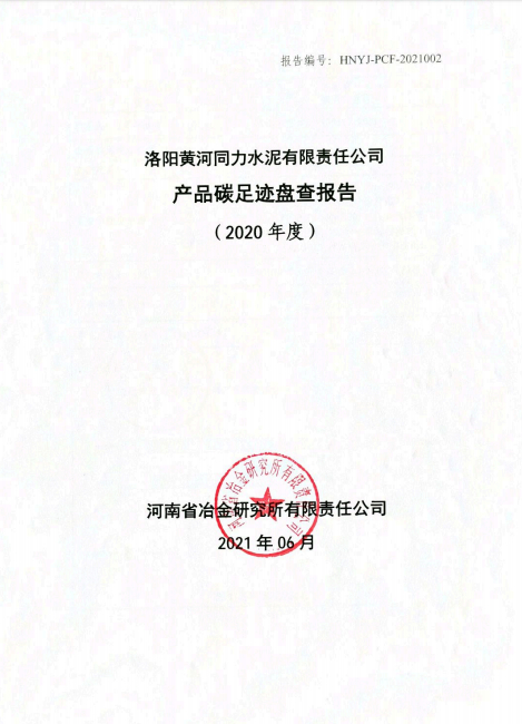 洛陽黃河同力水泥有限責(zé)任公司產(chǎn)品碳足跡盤查報(bào)告(2020年度)